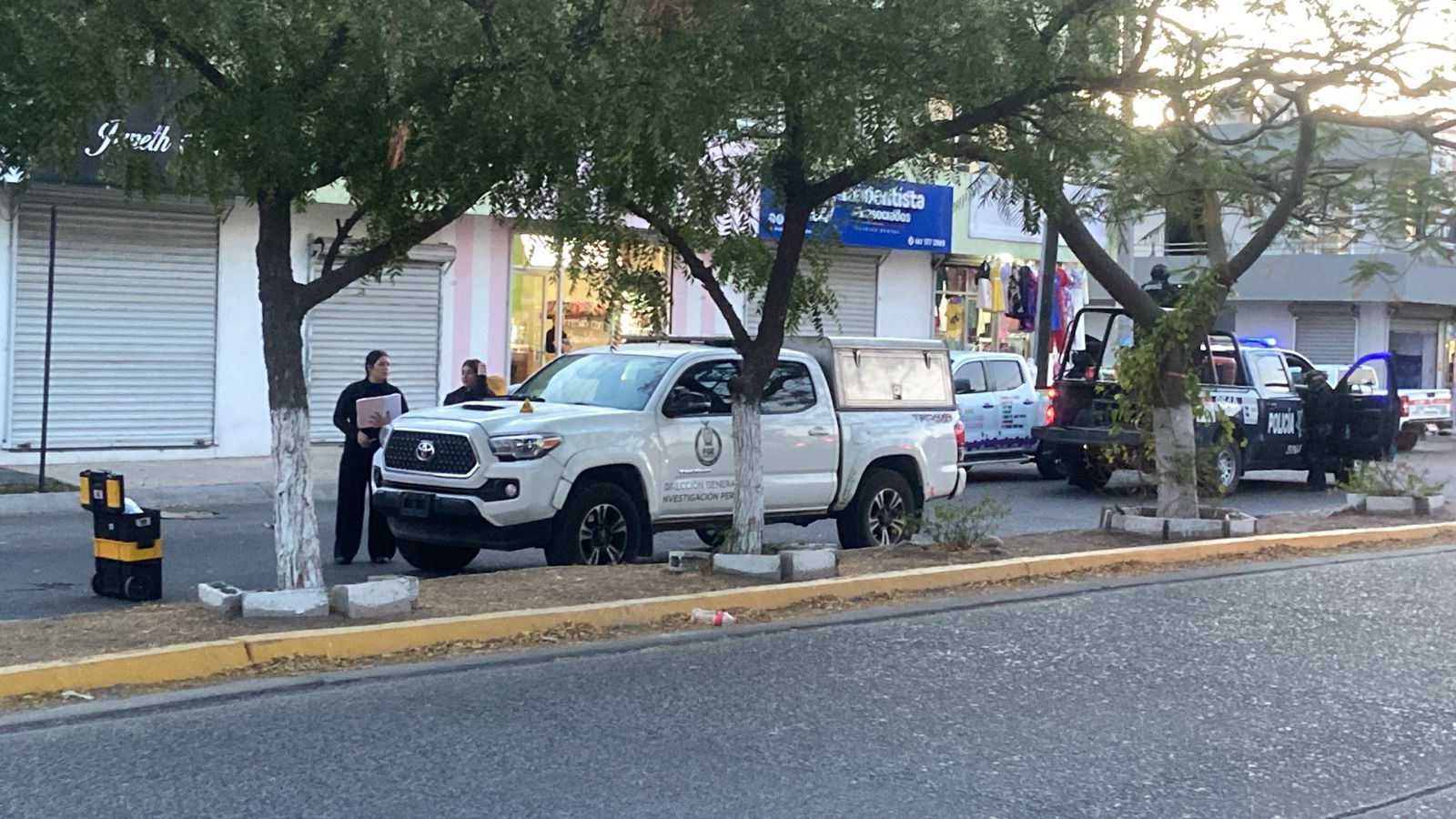La unidad de los sicarios fue abandonada a eso de las 18:40 horas sobre el carril de norte a sur del bulevar Norma Corona Sapiens frente a una taquería que se encuentra en la esquina de la calle Chametla.