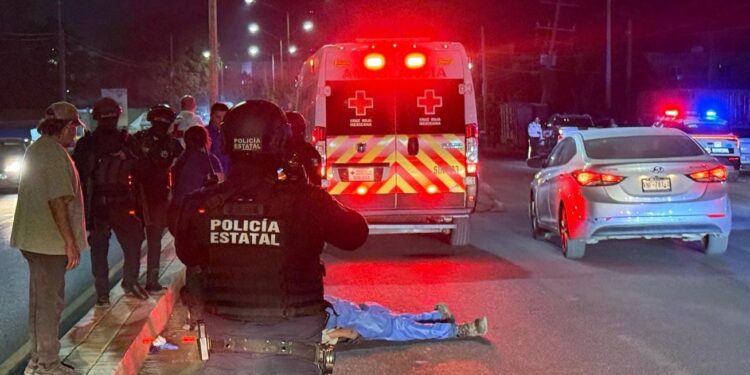 Elementos mientras de las distintas corporaciones policiacas llegaron al sitio para acordinar el área del accidente y posteriormente personal de la Fiscalía General del Estado llegó para dar fe del deceso.