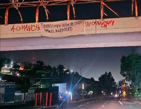 Uno de los puntos en los que se colocó la manta fue el puente peatonal ubicado en las inmediaciones del Libramiento Sur y calle Valle del Sur de la colonia Cañón de San Antonio, en la que elementos de la Secretaría de Seguridad y Protección Ciudadana Municipal (SSPCM) observaron a Rigoberto “N”, de 26 años de edad, cuando sostenía con ambas manos el mensaje.
