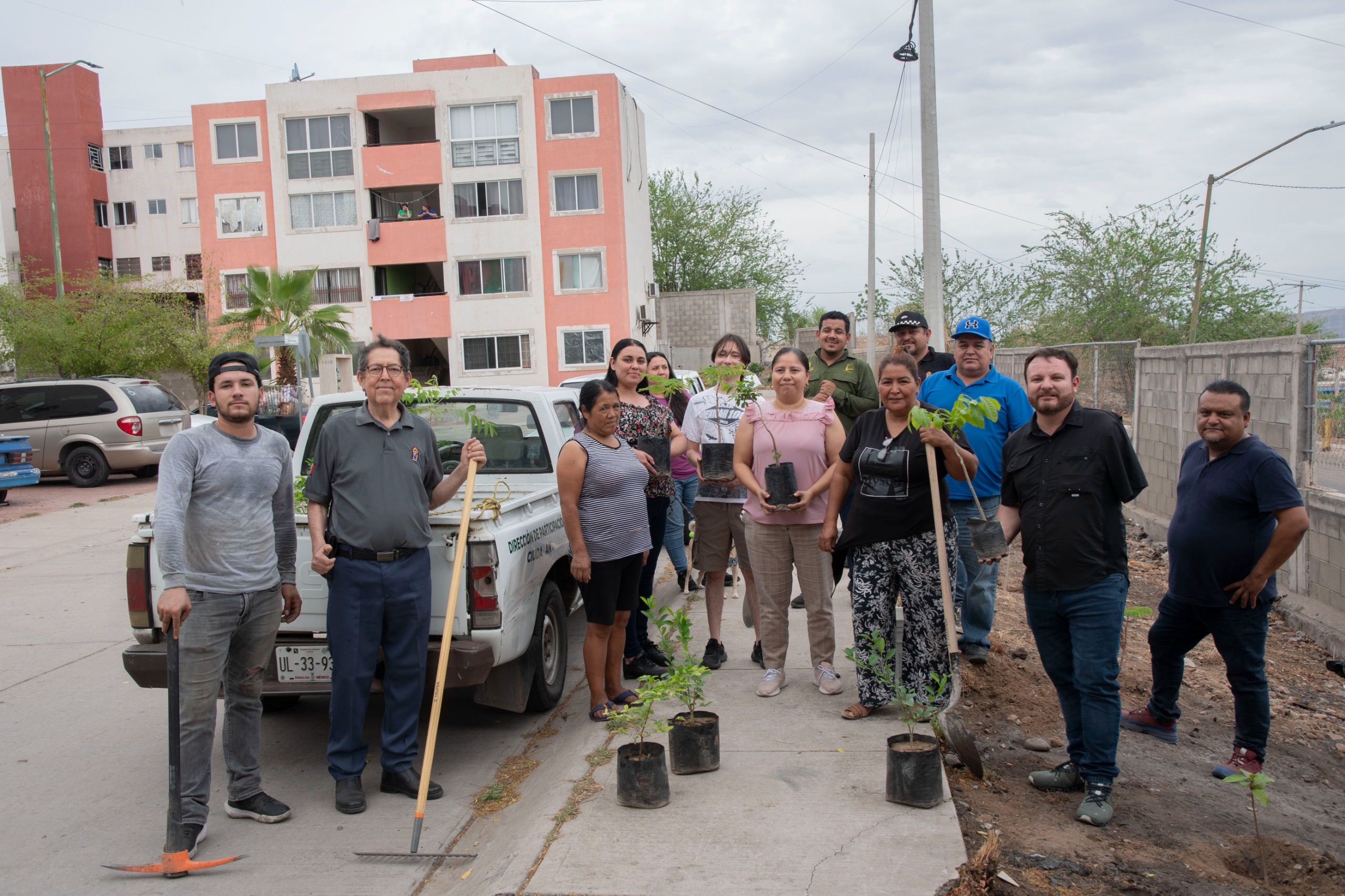 Como parte de la jornada, vecinas y vecinos colaboraron en la plantación de árboles para embellecer las aceras.