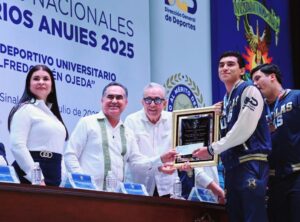 Con total orgullo y en una merecida ceremonia la Universidad Autónoma de Sinaloa (UAS) entregó el Premio al Mérito Deportivo Universitario “Dr. Jesús Alfredo Cuén Ojeda” a 239 universitarios deportistas, entrenadores y cuerpo médico que colocaron a esta institución en el segundo lugar del medallero de los Campeonatos Nacionales Universitarios ANUIES 2025, así como los estímulos económicos a deportistas y entrenadores donde la Máxima Casa de Estudios Sinaloense junto al Gobernador del Estado, doctor Rubén Rocha Moya, aportaron el monto para el premio.