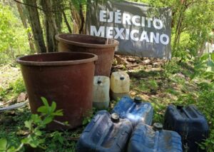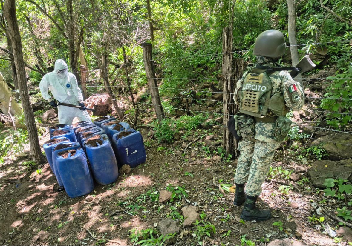 Al llevar a cabo reconocimientos a pie y motorizados, dentro del marco de la “Operación Búsqueda, Localización y Destrucción de Laboratorios Clandestinos”, en el municipio antes mencionado, el personal militar localizó lo siguiente: