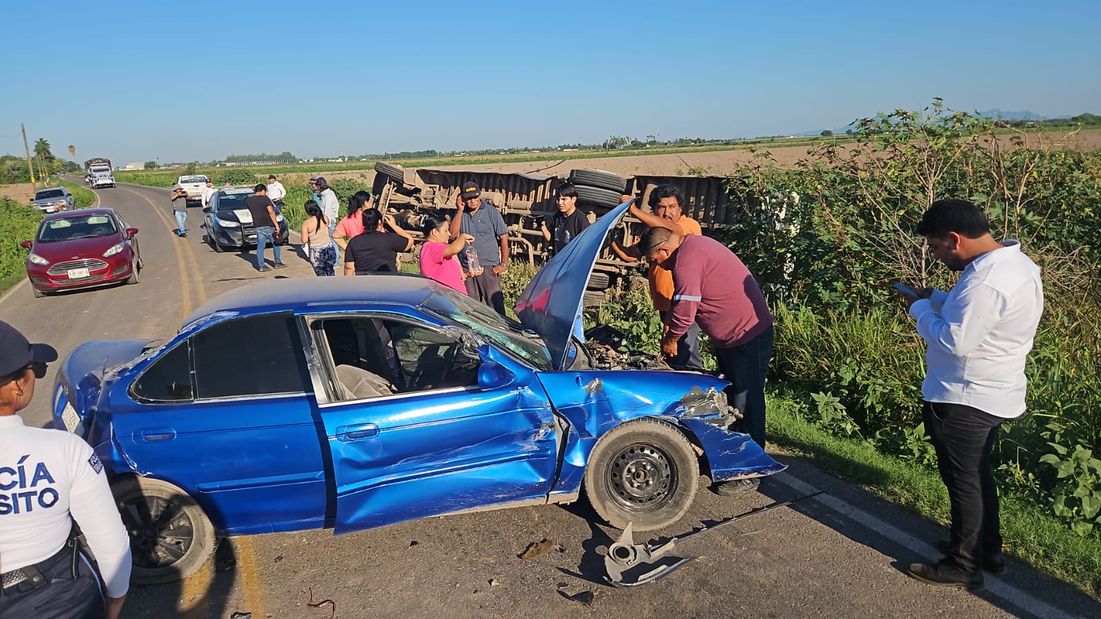 Elementos de la Policía de Tránsito Municipal de Navolato se hicieron. Cargo de realizar los peritajes correspondientes para deslindar responsabilidades.