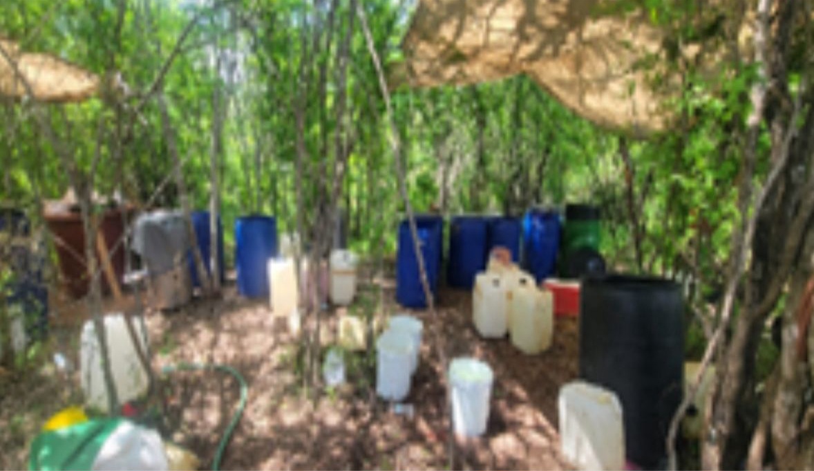 Durante reconocimientos terrestres, en el marco de la “Operación Búsqueda, Localización y Destrucción de Laboratorios Clandestinos”, personal militar localizó un laboratorio clandestino y un área de concentración en zonas rurales de los municipios mencionados, con los siguientes materiales para la elaboración de drogas sintéticas: