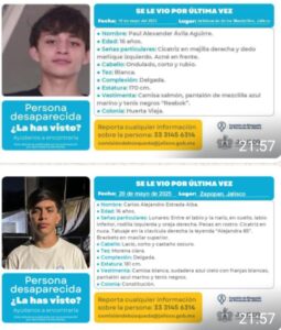 Ambos menores de edad (Carlos y Paul) contaban con fichas activas de búsqueda por parte de la Comisión de Búsqueda de Personas Desaparecidas del Estado de Jalisco desde el pasado mes de mayo, pero con diferentecia de días (10 y 20 de mayo).