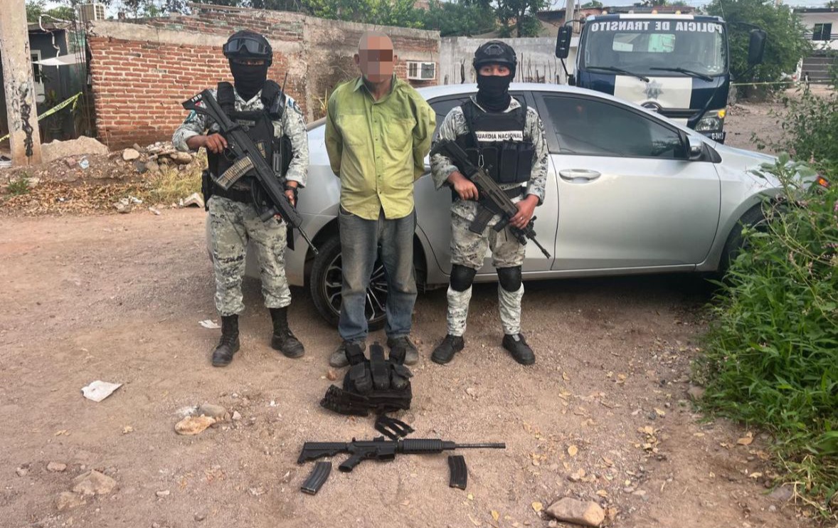 Tras recibir el reporte del C4i sobre una casa vandalizada en la colonia Rosario Uzárraga, el personal de la GN que se dirigía al sitio observó un vehículo que trató de evadir a las autoridades, por lo que le dieron seguimiento, logrando alcanzarlo en la colonia El Mirador, donde detuvieron al tripulante que circulaba con un arma larga y una unidad motriz sin número de serie.