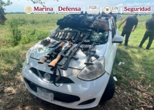También, durante recorridos de patrullaje en el poblado Casas Viejas, del municipio de Elota, personal naval aseguró cuatro armas largas, 2,203 cartuchos de diversos calibres, 38 cargadores para diversos calibres, cuatro magazines, nueve placas balísticas, siete chalecos tácticos y dos paneles balísticos.