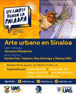 Culiacán, Sinaloa; a 16 de agosto de 2025.- “Los libros tienen la palabra”, es el nuevo programa en formato podcast que la Dirección de editorial de la Universidad Autónoma de Sinaloa (UAS) estrenará a partir del próximo sábado 16 de agosto, en punto de las 10:30 horas a través de las frecuencias de Radio UAS y las redes sociales oficiales del sello editorial universitario.