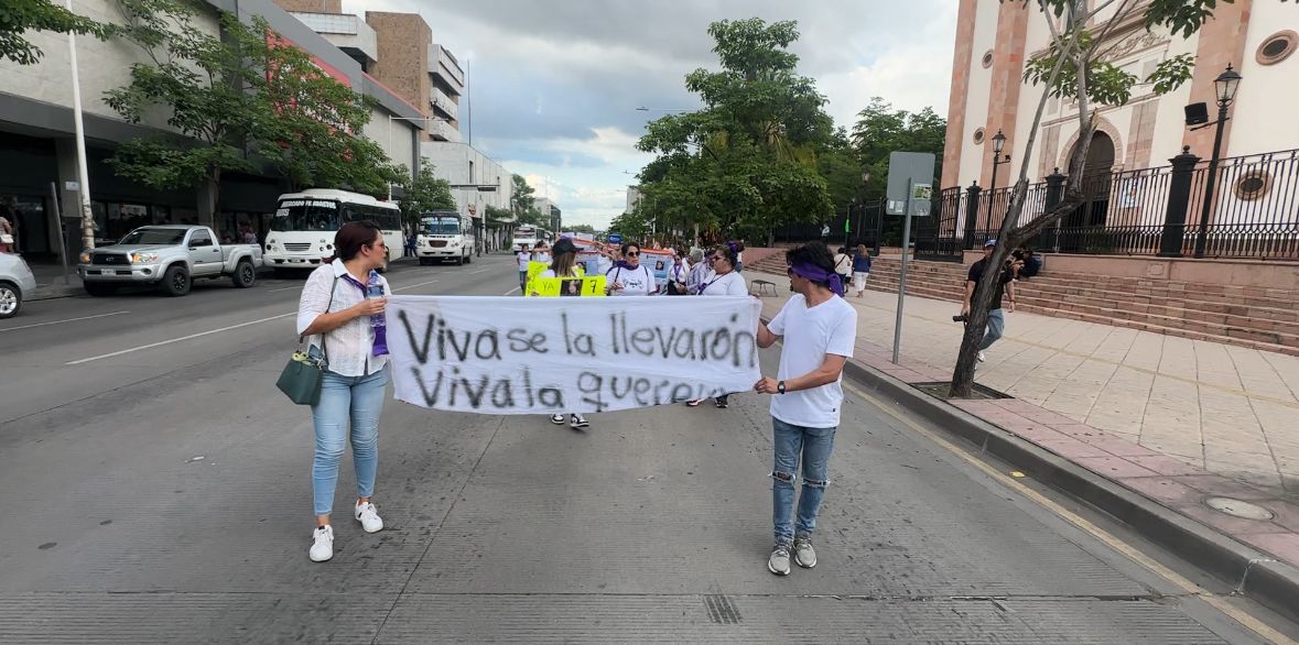 Culiacán, Sinaloa; a 21 de agosto de 2025.- Familiares y amigos tomaron las calles de Culiacán este jueves para exigir la localización de Patricia Villa Olivas, Francisco Javier Quiñónez Gastélum y Denisse Alejandra Avitia Villa, desaparecidos desde el 14 de agosto cuando viajaban por la carretera Culiacán-Mazatlán.