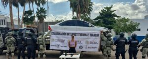 Navolato, Sinaloa, a 23 de agosto de 2025.- Personal del Ejército Mexicano, la Secretaría de Seguridad Pública de Sinaloa, a través de la Policía Estatal Preventiva y la Policía Municipal de Navolato, en coordinación con la Guardia Nacional, la Secretaría de Marina, la Secretaría de Seguridad y Protección Ciudadana, la Fiscalía General de la República y la Fiscalía General del Estado, recuperó un vehículo robado y detuvo a dos civiles con un arma larga en Navolato.