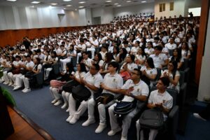 Culiacán, Sinaloa; a 23 de agosto de 2025.-Con una participación aproximada a los 800 jóvenes que este lunes 25 de agosto estarán iniciando ya sus estudios en la Licenciatura de Medicina General, en la Facultad de Medicina de la Universidad Autónoma de Sinaloa (UAS) se llevó a cabo el curso de inducción, en el cual en su mensaje de bienvenida el doctor Luis Alberto González García, destacó que esta capacitación es crucial porque entre los puntos que se manejan se destacan los valores éticos, científicos humanistas de la profesión.