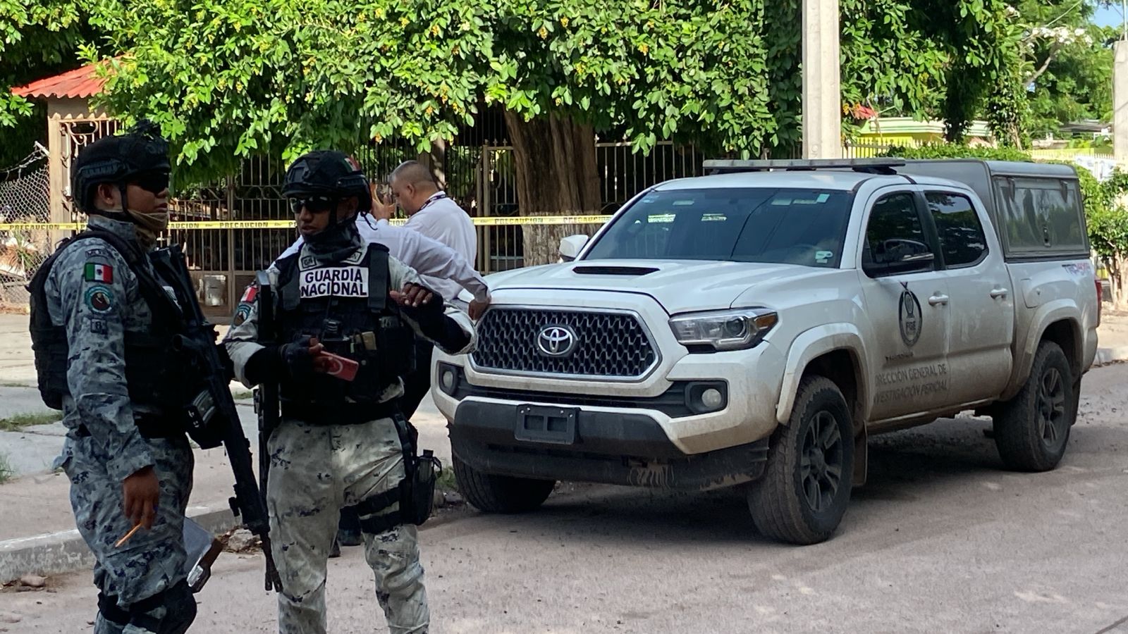 Elementos de la Secretaría de la Defensa Nacional, quienes tienen un campamento cerca del sitio y agentes de la Secretaría de Seguridad y Protección Ciudadana del Gobierno Federal para recabar información de lo sucedido.