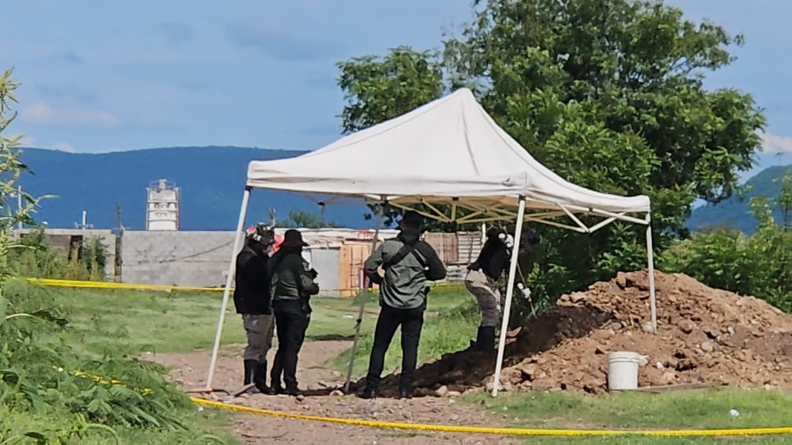El personal de la Fiscalía General del Estado se encuentra realizando los trabajos de excavación para confirmar si se trata de una sola persona o hay más restos humanos sepultados en el sitio.
