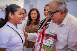 Como parte de la ceremonia de inicio de ciclo escolar, el gobernador Rocha también hizo entrega de los paquetes de libros de texto gratuito que se entregarán a todas las niñas y niños de los distintos los grados que componen el nivel básico.