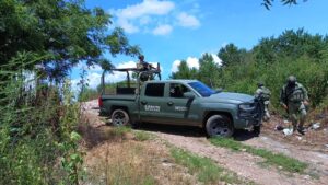 Elementos de las distintas corporaciones policiacas y militares acudieron al lugar del hallazgo para apoyar al personal de la la Fiscalía General del Estado para integrar la carpeta de investigación.