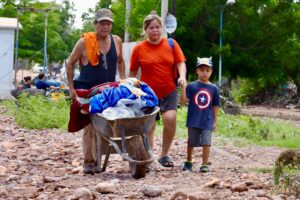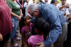 Nuevo San Miguel, Ahome, Sinaloa 11 de septiembre de 2025.- Con el compromiso de estar cerca de la gente y atender sus necesidades, el gobernador Rubén Rocha Moya, visitó las comunidades de Nuevo San Miguel, Santa Teresita y Goros, en Los Mochis, que resultaron afectadas por las fuertes lluvias registradas en la zona el día de ayer, a fin de constatar los daños ocasionados, así como supervisar el levantamiento del censo de afectados y entregar apoyos materiales a las familias.