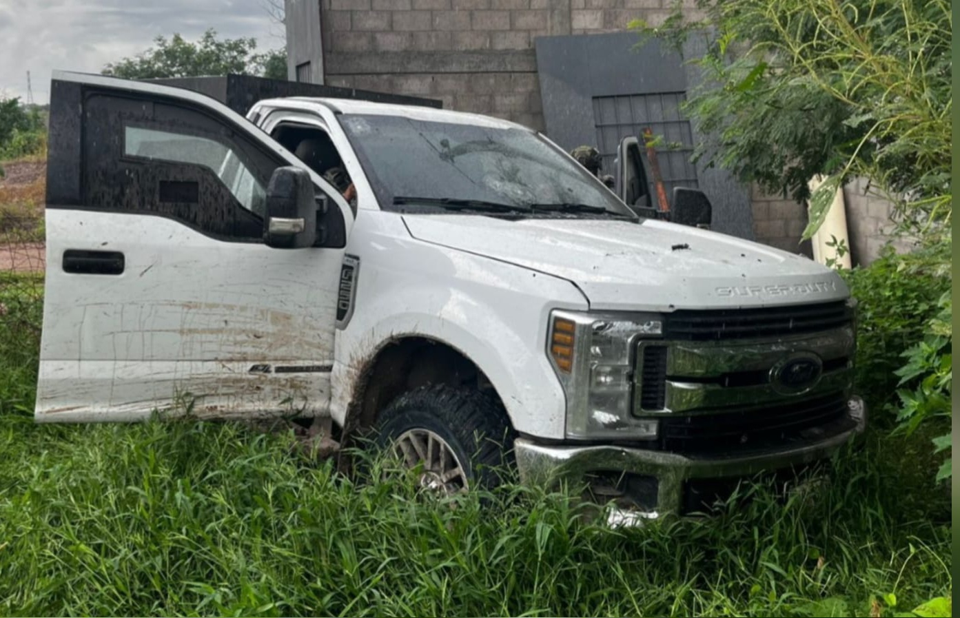 En continuidad con los trabajos en la zona, los elementos castrenses que llevaban a cabo recorridos terrestres en las inmediaciones de la sindicatura de Culiacancito, en la capital del estado, localizaron otro vehículo: se trata de una Ford pickup con blindaje artesanal y reporte de robo vigente, la cual presenta impactos de arma de fuego en la carrocería.