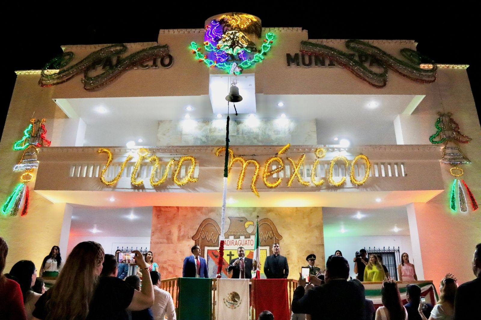 Badiraguato, Sinaloa a 16 de septiembre de 2025.-El presidente municipal José Paz López Elenes, encabezó el tradicional Grito del 215 aniversario de la Independencia de México en el Palacio de Gobierno acompañado del Cabildo, funcionarios municipales, turistas y cientos de familias badiraguatenes que se dieron cita en el zócalo para celebrar este día tan conmemorativo para las y los mexicanos.