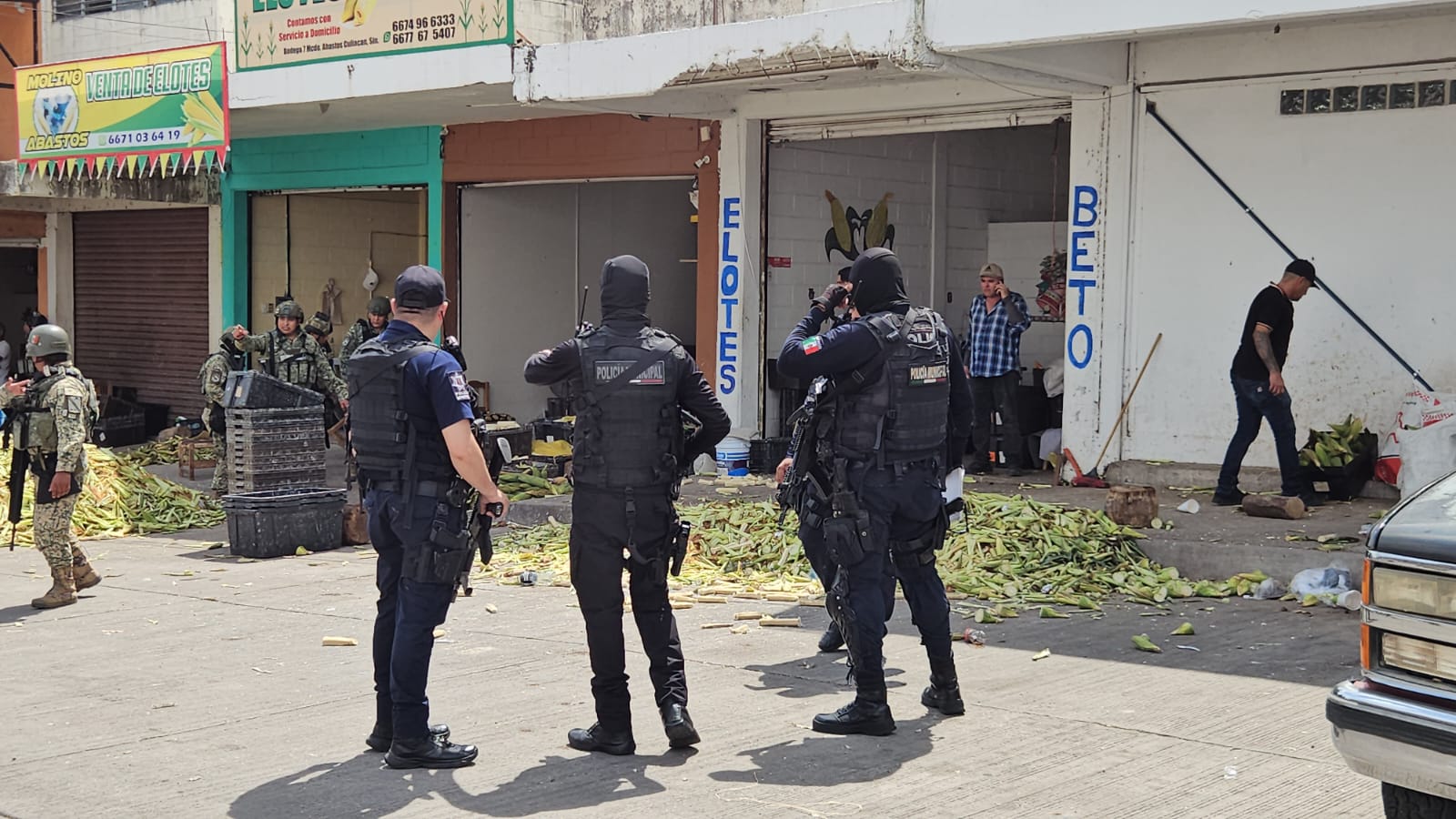 Culiacán, Sinaloa; a 23 de septiembre de 2025.- Un ataque a balazos en contra de varias personas que se encontraban en un negocio de venta de elotes en el Mercado de Abastos dejo dos heridos a balazos.