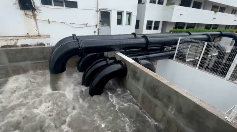 Mazatlán, Sinaloa, a 11 de octubre de 2025.- De la manera más oportuna al registrarse una intensa lluvia este sábado por la mañana en Mazatlán, fue puesta en operación la obra de drenaje pluvial y cárcamo de rembombeo en la avenida Camarón Sábalo, en plena zona dorada de este destino turístico, con lo cual se pone fin al histórico problema de encharcamientos de agua.