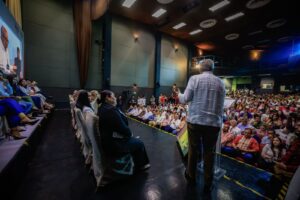Mazatlán, Sinaloa 11 de octubre de 2025.-* El gobernador Rubén Rocha Moya, acudió, como invitado de honor, al primer informe de labores de las y los diputados del grupo parlamentario de Morena de la zona sur, quienes informaron a la ciudadanía su desempeño del último año de su agenda legislativa.