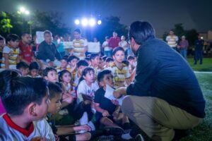 “Estamos poniendo esta semillita en cada colonia para que germinen cosas más bonitas que nos generen entornos de paz, de mejor convivencia; lo hemos visto, cómo a partir de que ponemos una cancha de fútbol cada día surgen más equipos, y hay más gente que se suma, incluso las mamás hacen su equipo. Hay una dinámica social distinta en torno a un balón de fútbol”, expresó.