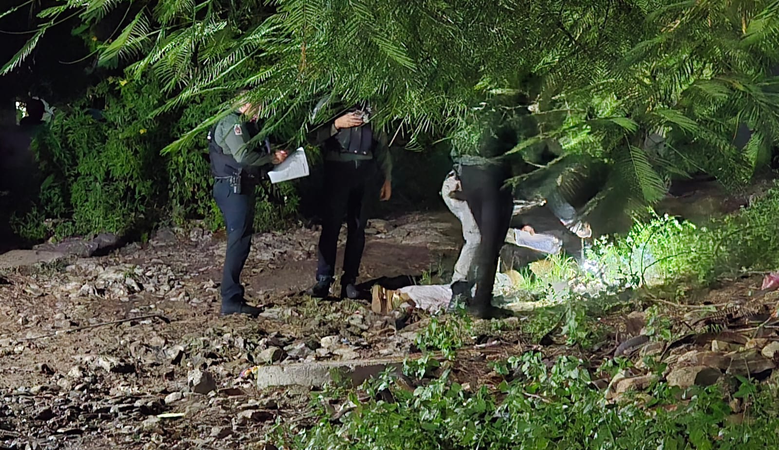 Personal de la Fiscalia General del Estado llegó minutos después para dar fe del hallazgo y recabar indicios, entre ellos varios casquillos de arma de grueso calibre.