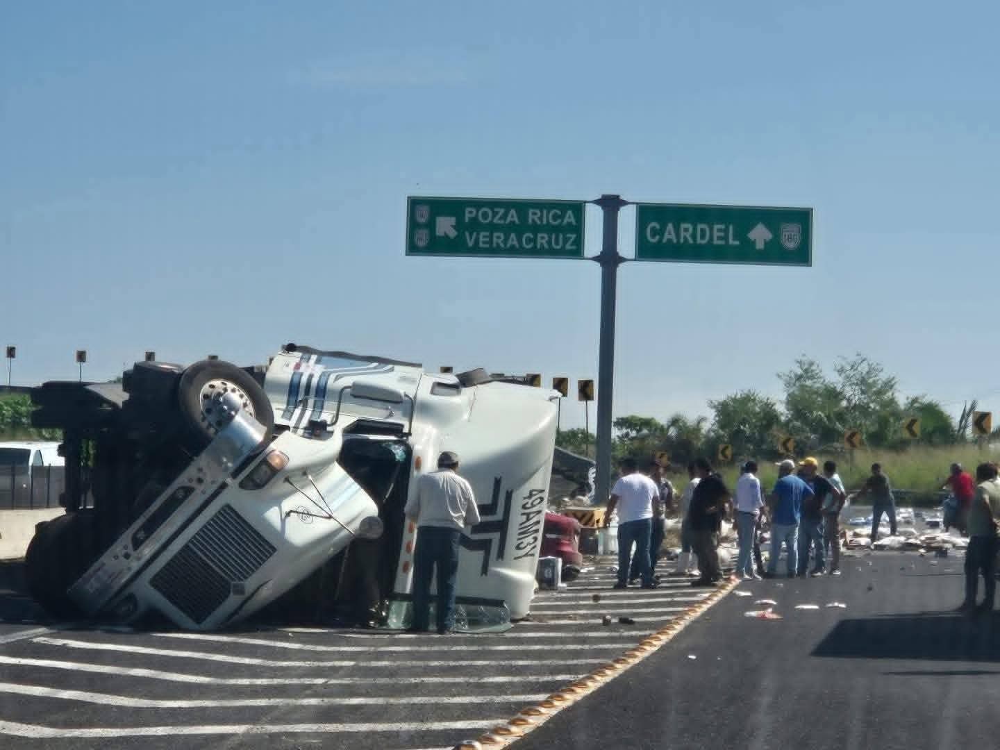 Automovilistas y gente que vive cerca de la zona aprovecharon el momento para robar las miles de despensas, las que tenían como destino llegar a los damnificados de los municipios del norte de Veracruz que en este momento necesitan ayuda urgente.