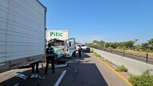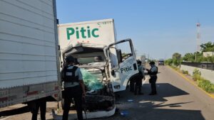 Ambos trabajadores circulaban a bordo de un camión de la marca Hino, de color blanco modelo reciente, propiedad de dicha empresa cuando se impactaron por alcance contra la caja metálica blanca de un tráiler de color amarillo que circulaba en la misma dirección a la altura de la procesadora de hortalizas Prinsa y sobre el carril de norte a sur.
