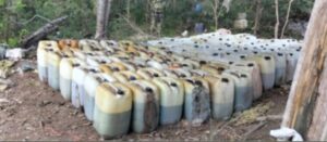 • 70 bidones conteniendo aproximadamente 3,500 litros de alcohol.