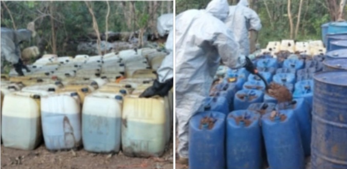 • 22 bidones conteniendo aproximadamente 1,100 litros de tolueno.