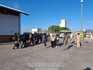 Puerto de Topolobampo, Sinaloa; a 30 de octubre de 2025.– La Secretaría de Marina a través de la Armada de México, en funciones de Guardia Costera en coordinación con el Sistema Nacional de Protección Integral de Niñas, Niños y Adolescentes (SIPINNA), perteneciente a la Secretaría de Gobernación, además de Protección Civil, la Unidad Naval de Protección Portuaria (UNAPROP) de La Paz. B.C.S, y la Capitanía de Puerto de Topolobampo, Sinaloa, brindaron el apoyo a 28 personas que llegaron por sus propios medios al recinto portuario de la Terminal Dos de La Paz, BCS.