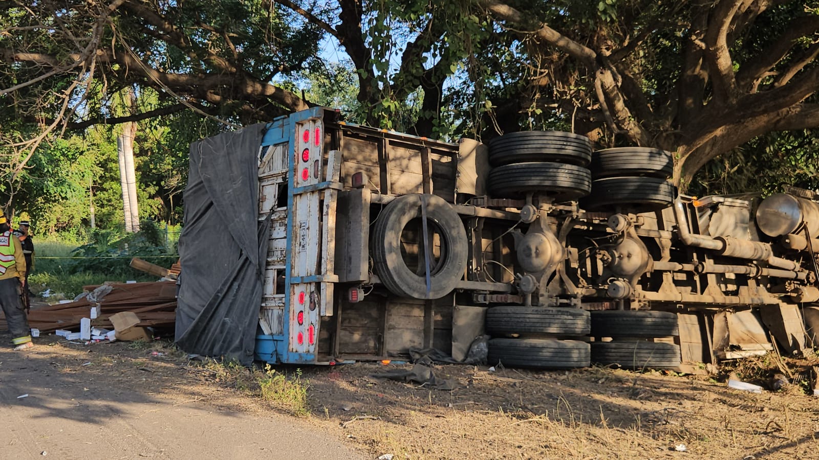 Culiacán, Sinaloa; a 04 de noviembre de 2025 – Un accidente de carretera tipo salida de camino y volcadura de un camión de carga tipo Torton provocó el deceso de un joven un joven.
