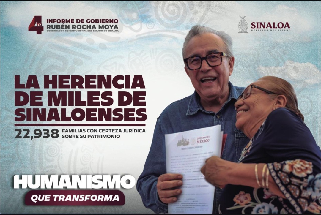 El mandatario, también destaca, en el material audiovisual, que se ha dado certeza jurídica sobre su patrimonio a más de 22 mil familias, dignificando la vida de las y los sinaloenses.