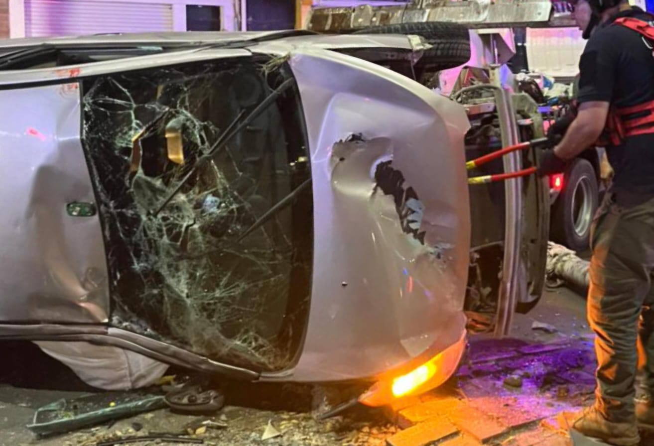 Culiacán, Sinaloa; 09 de noviembre del 2025.- Un aparatoso accidente de tránsito tipo choque y volcadura registrado durante la madrugada de este domingo dejó un saldo de una pareja, hombre y mujer, lesionados.