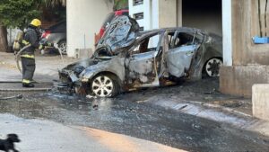 Durante el incendio el automóvil fue consumido por completo por las llamas, así como parte de la vivienda, pero gracias a la rápida intervención de Los Bomberos el fuego fue controlado y sofocado por completo.