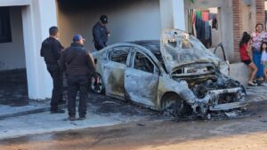 El hecho ocurrió a las 06:30 horas de la mañana de hoy lunes y los responsables fueron sujetos armados que llegaron al sitio a bordo de dos vehículos, uno de modelo reciente y el otro el automóvil Chevrolet, el cual fue colocado en reversa en la cochera del inmueble y después le prendieron fuego.