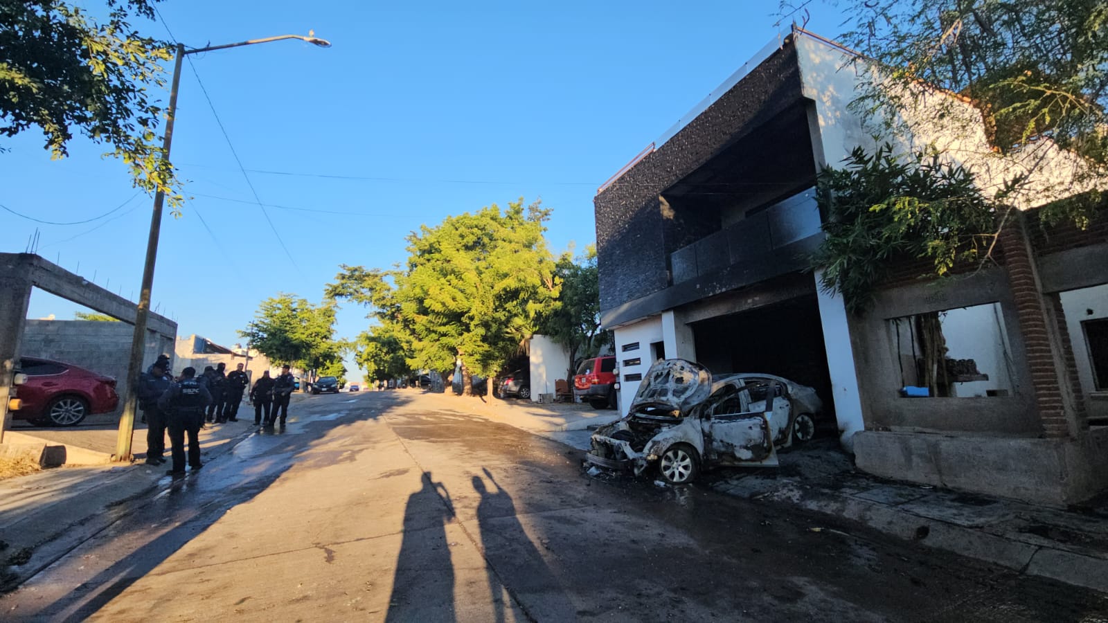 Culiacán, Sinaloa; a 17 de noviembre del 2025.- Una vivienda fue tiroteada, vandalizada y quemada de manera intencional junto con un vehículo durante la mañana de este lunes en el fraccionamiento Lomas del Humaya, el sector Santa Fe, al norte de Culiacán.