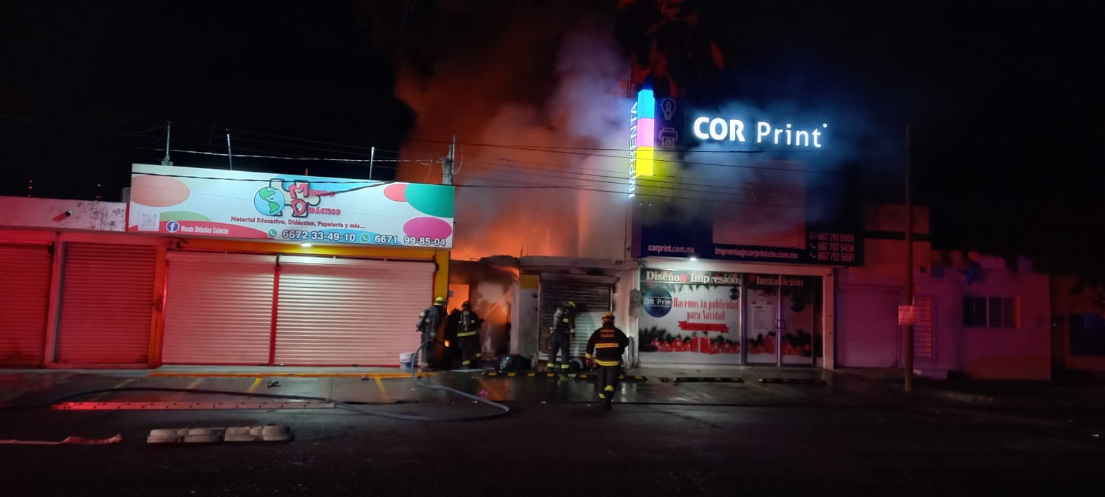 El fuego se propagó a una parte de un edificio dos plantas de una imprenta que hay a un costado, pero la rápida intervención de los elementos del Cuerpo de Bomberos Culiacán lograron sofocar las llamas antes de qué estas acabaran por completo con la segunda propiedad.