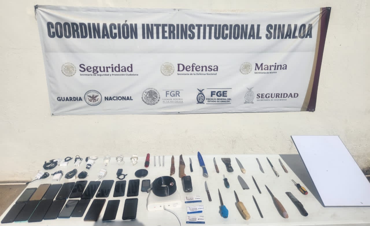 Culiacán, Sinaloa, a 21 de noviembre de 2025.- Elementos de la Secretaría de Seguridad Pública de Sinaloa, a través del Grupo de Operaciones Especiales Sinaloa (GOES) y la Policía Estatal Preventiva, en coordinación con el Ejército Mexicano, la Guardia Nacional, la Secretaría de Marina, la Secretaría de Seguridad y Protección Ciudadana, la Fiscalía General de la República y la Fiscalía General del Estado, realizaron la revisión de dos módulos del Centro Penitenciario Aguaruto, en Culiacán, durante este viernes 21 de noviembre.