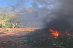 – 1 plantío de marihuana con dimensiones de 900 metros de largo por 5 metros de ancho y 1.20 metros de altura.