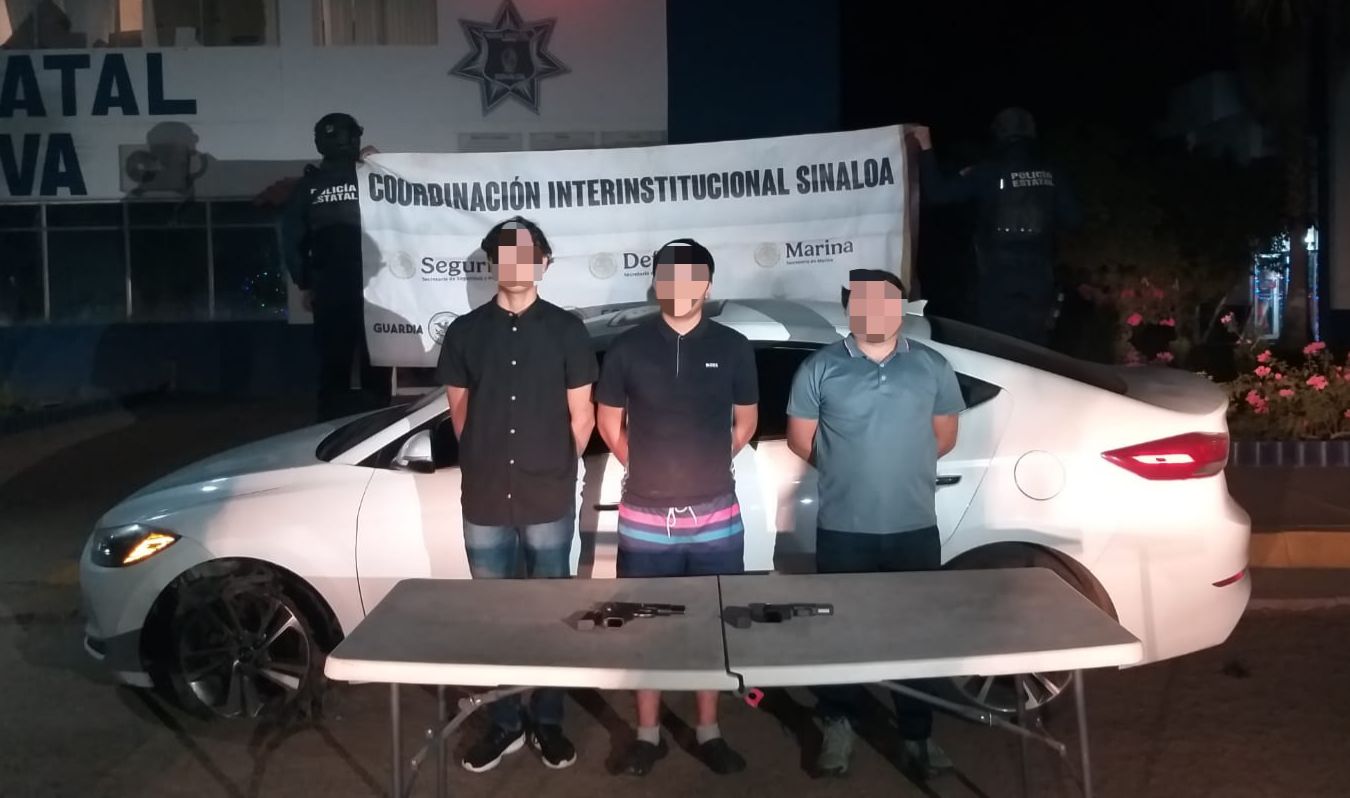 Culiacán, Sinaloa, a 29 de noviembre de 2025.- Tras un operativo de seguridad, elementos de la Secretaría de Seguridad Pública de Sinaloa, a través de la Policía Estatal Preventiva, en coordinación con el Ejército Mexicano, la Guardia Nacional, la Secretaría de Marina, la Secretaría de Seguridad y Protección Ciudadana, y la Fiscalía General de la República, así como la Fiscalía General del Estado, detuvieron a tres personas de sexo masculino y aseguraron un vehículo, además de dos armas de fuego en la ciudad capital.