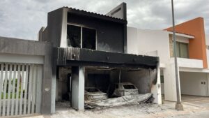 Culiacán, Sinaloa; a 04 de diciembre de 2025.- A las 11:30 de la noche de ayer miércoles se registró un ataque a balazos vandalización e incendio de una residencia dos plantas que se localiza frente al parque del fraccionamiento Canaco.