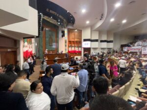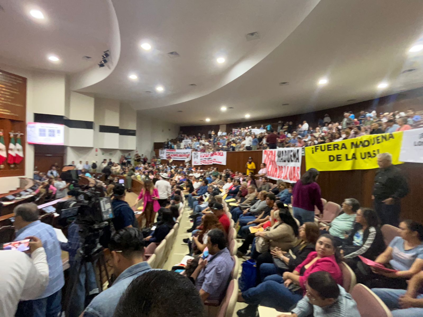 Los jubilados de la UAS irrumpieron en la sesión del Congreso del Estado de Sinaloa, para expresar su descontento a los diputados y exigir la destitución del rector Jesús Madueña Molina.