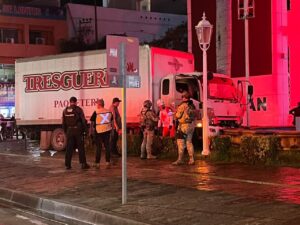 Culiacán, Sinaloa; a 05 de diciembre de 2025.– En pleno centro de la ciudad y frente al edificio del Ayuntamiento, el conductor de un camión de paquetería de la empresa Tres Guerras fue atacado a balazos por dos gatilleros que se desplazaban a bordo de una motocicleta durante la tarde de este viernes.