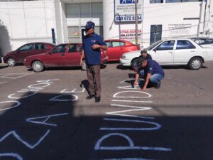 Además realizaron pintas sobre la calle