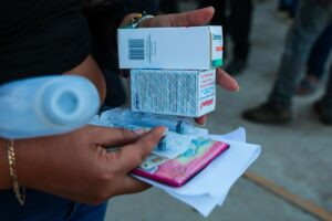 Asimismo, las familias recibieron atención médica a través de la Secretaría de Salud, mediante la aplicación de un esquema de vacunación completo que comprende vacunas para niñas, niños y personas adultas, entre ellas: influenza, neumococo, rotavirus, hexavalente, sarampión, rubéola y paperas, así como TDPA, fortaleciendo la prevención de enfermedades y el cuidado integral de la salud.
