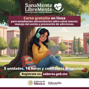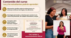 Este curso, que fue diseñado por más de 70 especialistas y está dirigido a 5.5 millones de estudiantes, cuenta con más de 70 actividades pedagógicas interactivas desde videos, infografías, ejercicios, evaluaciones, análisis de casos, foros y lecturas con el objetivo de brindar, a las y los jóvenes, herramientas para fortalecer su bienestar emocional y construir relaciones más sanas. Al finalizar las 16 horas que dura este curso, las y los estudiantes recibirán una constancia con validez y reconocimiento oficial.