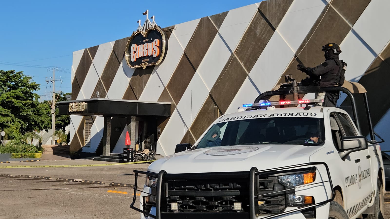 Minutos después llegaron al sitio elementos de la Guardia Nacional y confirmaron que el casino había sido tiroteado por un grupo armado, quienes a demás le prendieron fuego en la entrada principal con un bidón de gasolina, aunque las llamas no se propagaron.