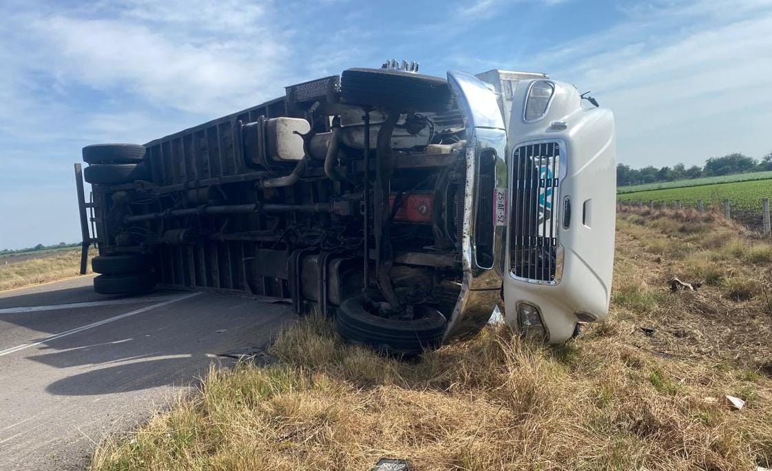 Culiacán, Sinaloa; 24 de diciembre de 2025.- Un aparatoso accidente tipo volcadura se registró la mañana de este miércoles en la maxipista Culiacán–Mazatlán, luego de que un tractocamión terminara volcado sobre uno de sus costados, obstruyendo parcialmente la circulación.